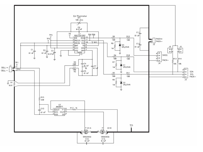 3.采用先进的SBS协议智能电量计量管理方案,通过SMBUS接口向主机传达精确的电池电量信息,原理图: